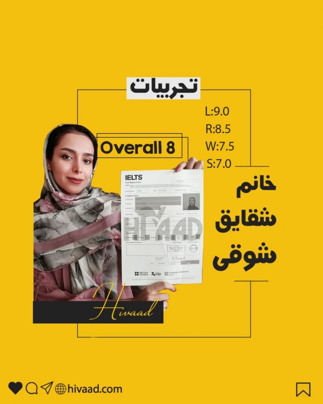 تجربیات خانم شقایق شوقی شرکت در آزمون آیلتس آکادمیک اورال 8 تجربیات کاربرانتوسط هیواد21 مهر 1400نوشتن دیدگاه